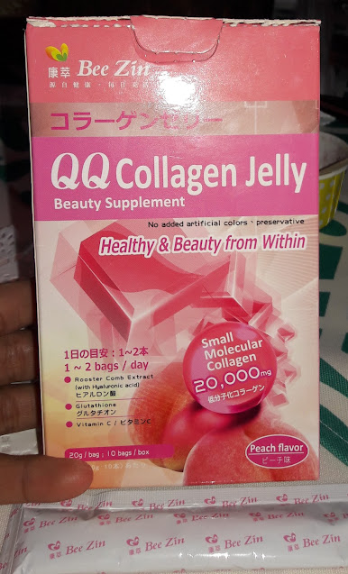 QQ Collagen Jelly (20000mg Collagen) -- The Collagen jellies have varieties of flavor: peach, grape, orange and kiwi. QQ is for whitening and moisturizing. I tried the peach flavor and it's really good! You''ll love the taste and smells so yummy!